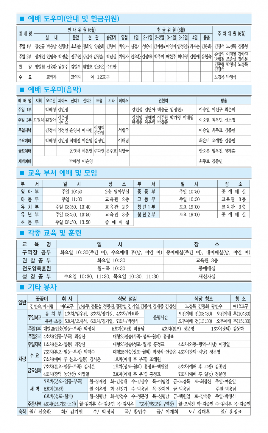 • 교회사역일정