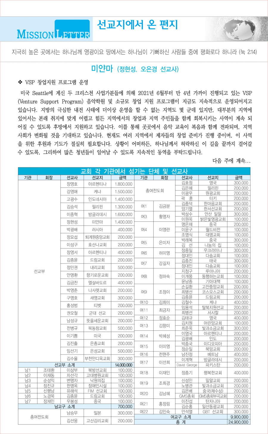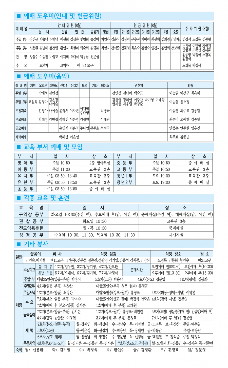 • 교회사역일정