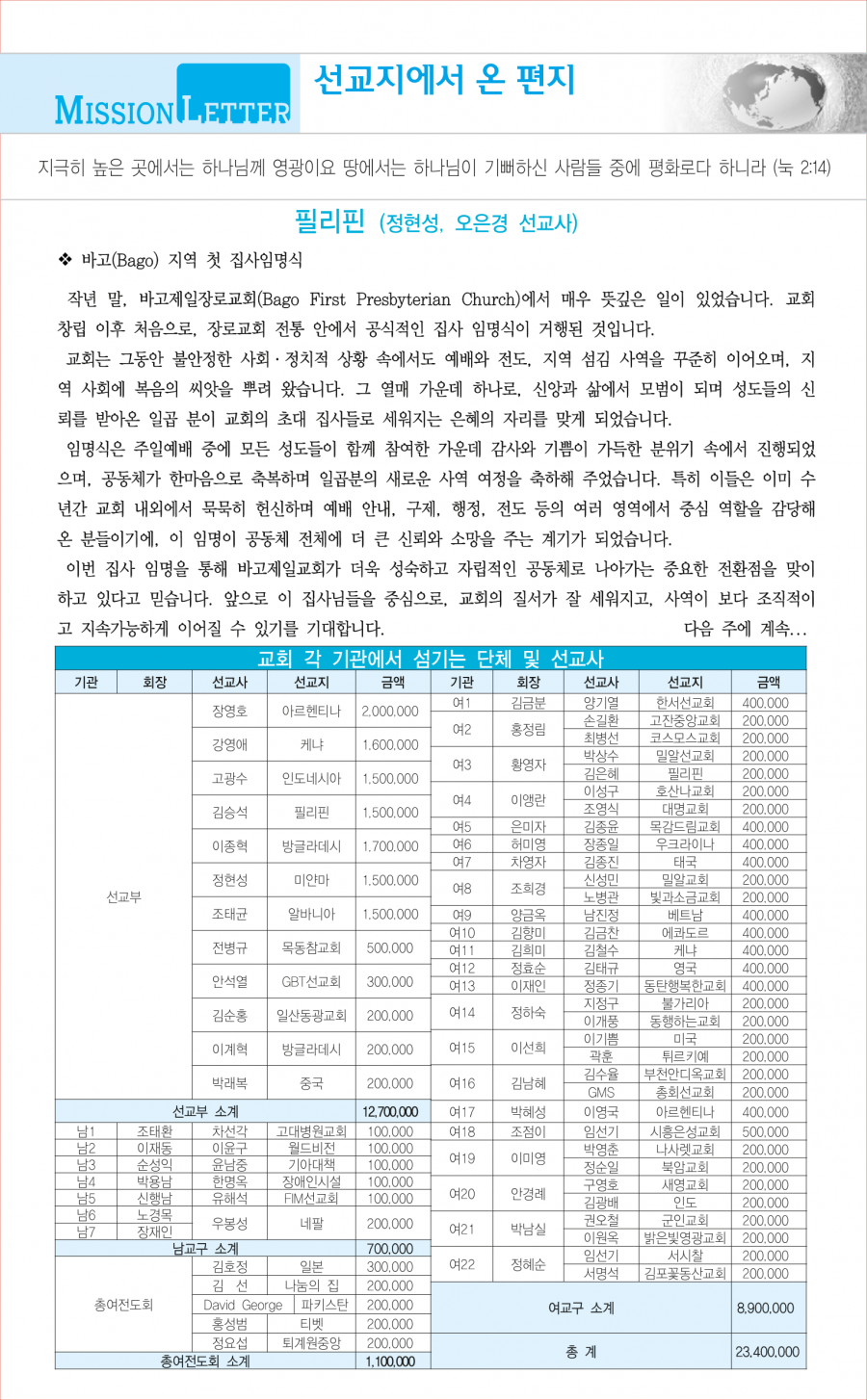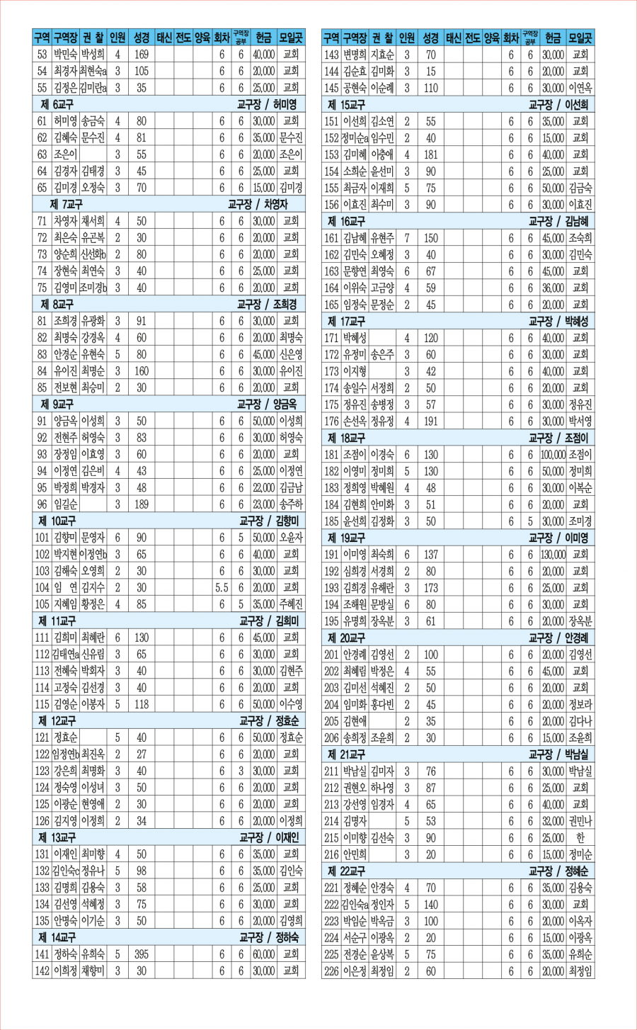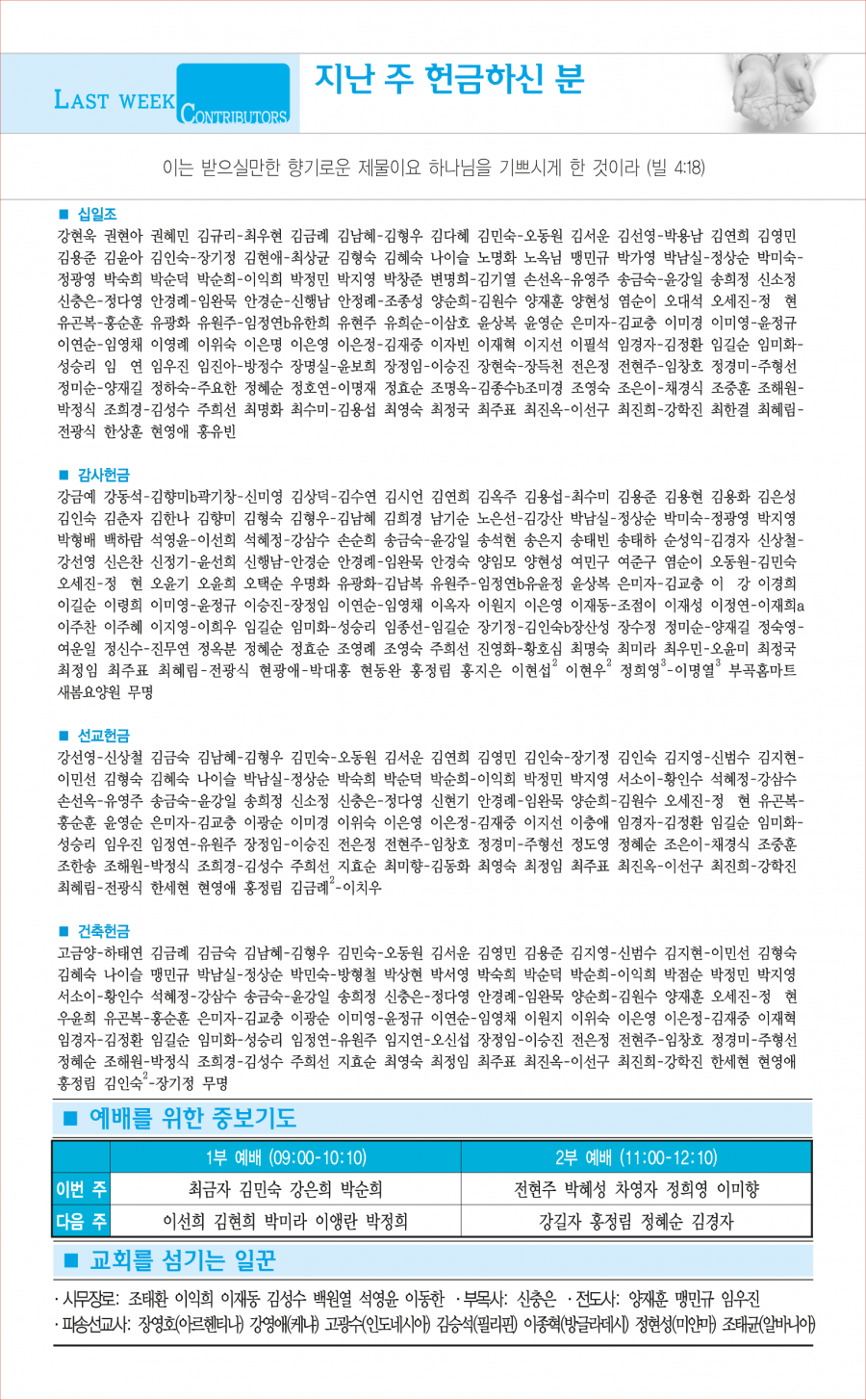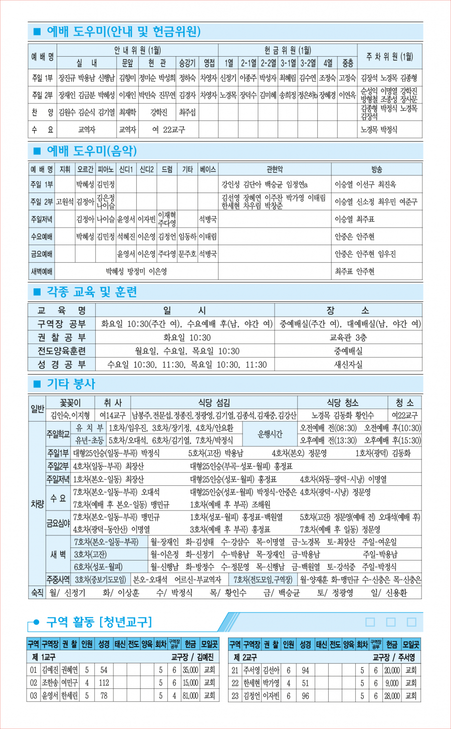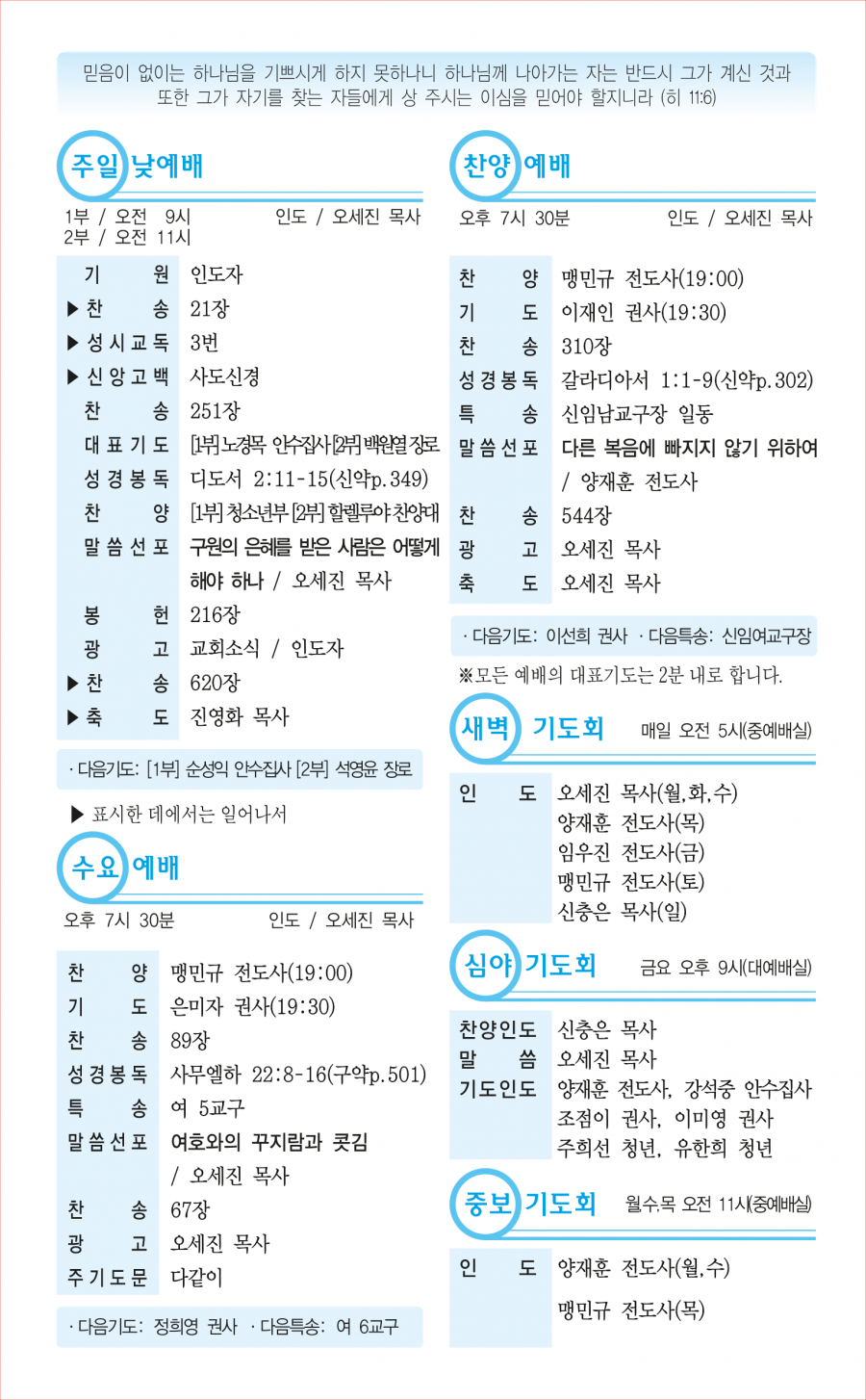 교회사역일정