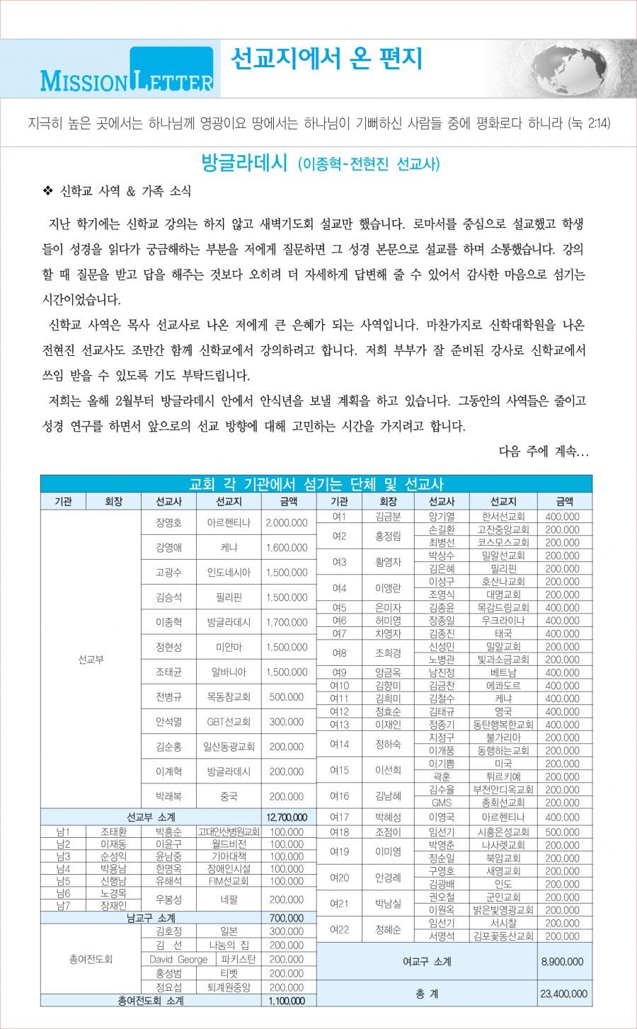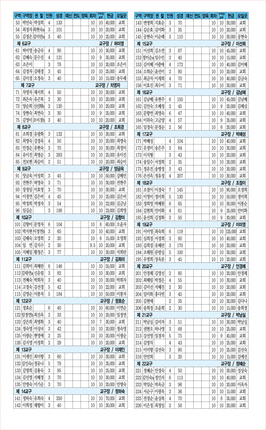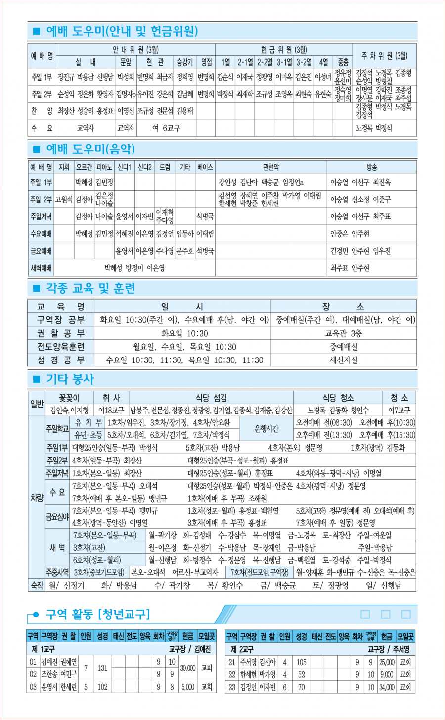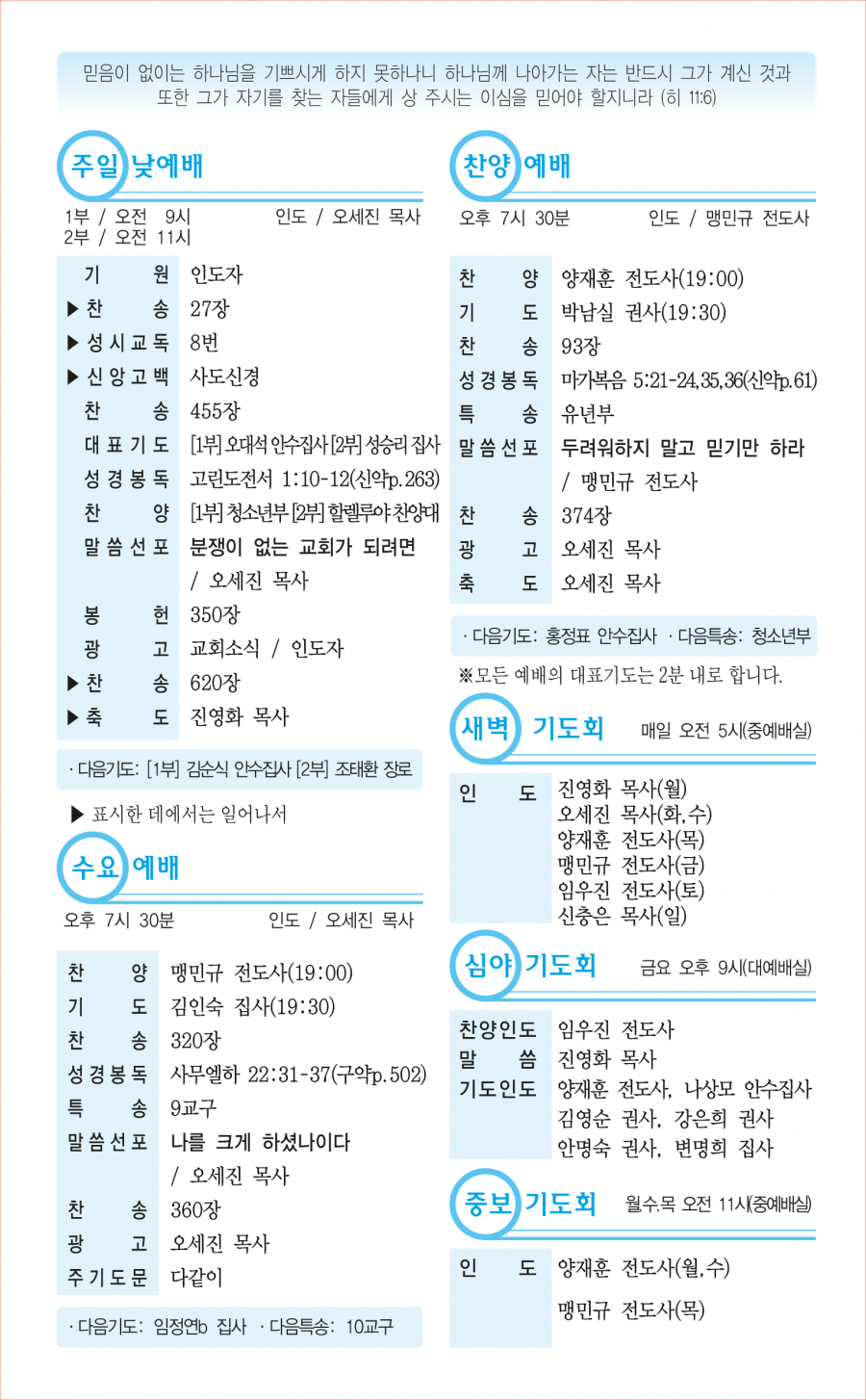 교회사역일정